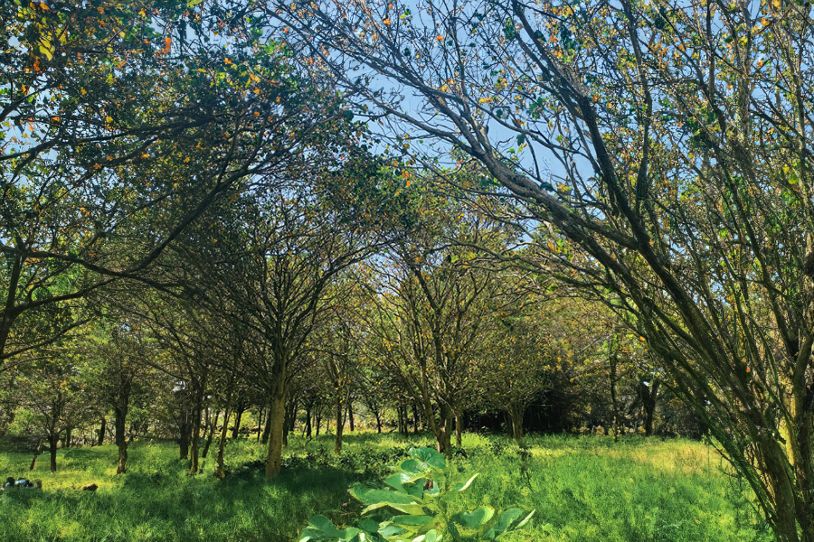 일반 토양보다 10배나 높은 유기물을 함유 하고 있는 화산토로 공극률이 높고 수분이 오래 머물지 않아 황칠의 생육환경에 가장 적합합니다.