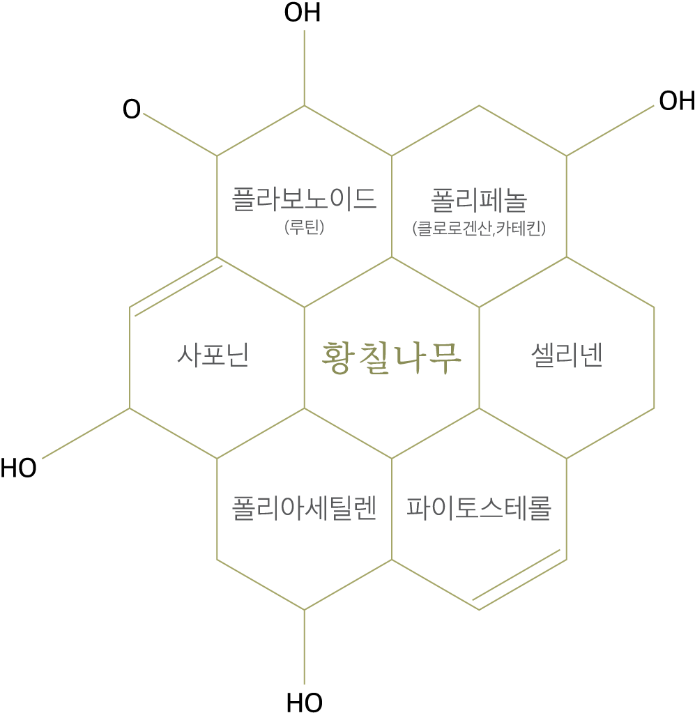 황칠나무의 좋은 성분들은 노란 수액 속에 함유되어 있는데,